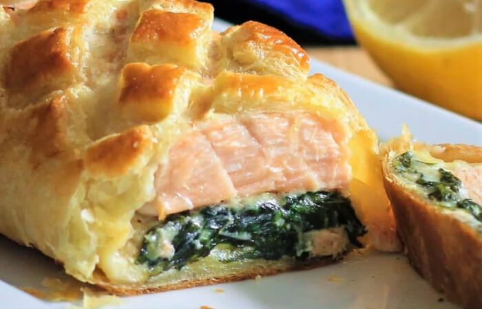 Hoy traemos una receta de esas que son una apuesta segura en cualquier ocasión. Sin embargo, por su sabor y su peculiar presentación es uno de esos platos que pueden servirse en eventos especiales como la cena de Nochevieja o la comida de Navidad. Se trata de un salmón en hojaldre que demás de estar riquísimo, tiene la ventaja de que se puede preparar con antelación, algo muy importante en la organización. Una vez listo, se pueden reservar y dar un nuevo golpe de horno justo antes de servir para que vuelva a tener una textura recién hecha. De todas formas, si se sirve como entrante, también funciona muy bien, templado, incluso frío.