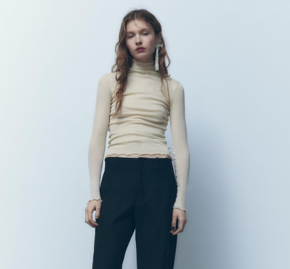 Por último, te mostramos esta camiseta de Zara, confeccionada en algodón. El diseño presenta cuello subido y manga larga, con acabados en ondas. La consigues en color crudo en los talles del S al XL. Esta prenda pertenece a la colección Join Life, producido utilizando menos agua. El precio de venta es de 17,95 euros.