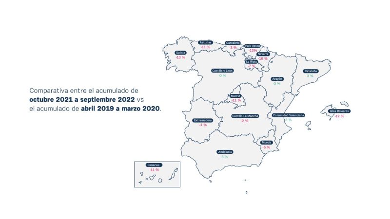 Tras la relajación de estas restricciones, vuelve a aparecer a partir del otoño de 2021 un patrón similar al prepandémico, aunque sin alcanzar hasta la fecha los mismos niveles de demanda. Este comportamiento a nivel nacional se replica en general para todas las comunidades.