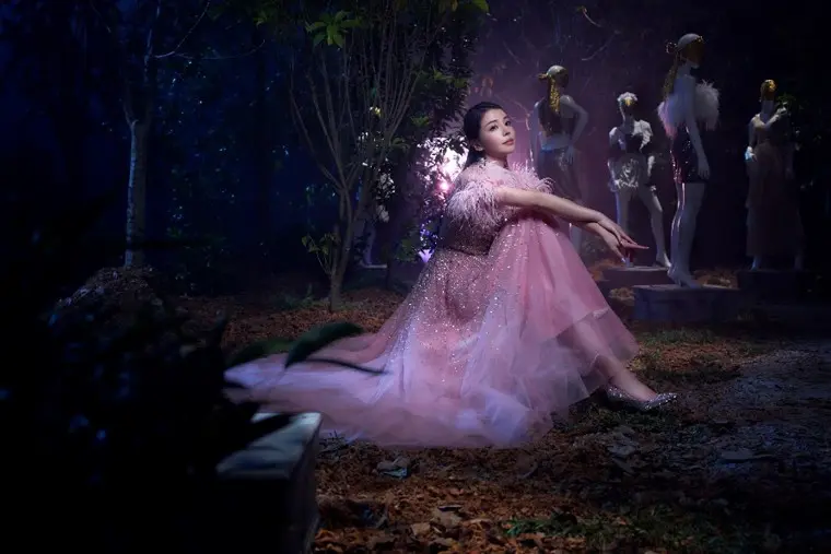 Otro conjunto de impresionantes imágenes en movimiento e imágenes fijas también se publica hoy junto con Vogue Hong Kong para relacionar el vídeo animado con la vida real. En ellas se muestra a una decidida Tia, con un vestido rosa de Jenny Packham, huyendo de maniquíes ataviados con sofisticadas ropas.