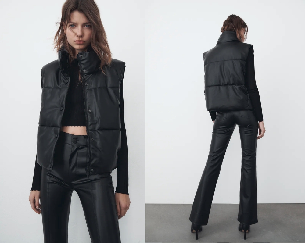 Solo 39,95€ es lo que cuesta este chaleco efecto piel de Zara. Disponible en varias tallas y en color negro. A pesar de que parece piel, no se ha empleado piel de animal, sino que es poliuretano con forro de poliéster.