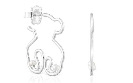 7Pendientes aro oso de plata y perlas cultivadas Tsuri de Tous