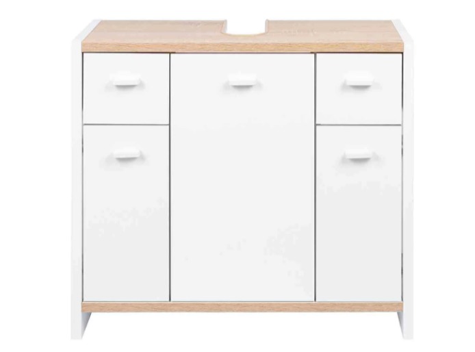Ponle el broche de oro a la decoración de tu cuarto de baño con este práctico y bonito mueble para la zona inferior del lavabo. Compuesto por dos cajones, y tres puertas, siendo la central la más grande.
