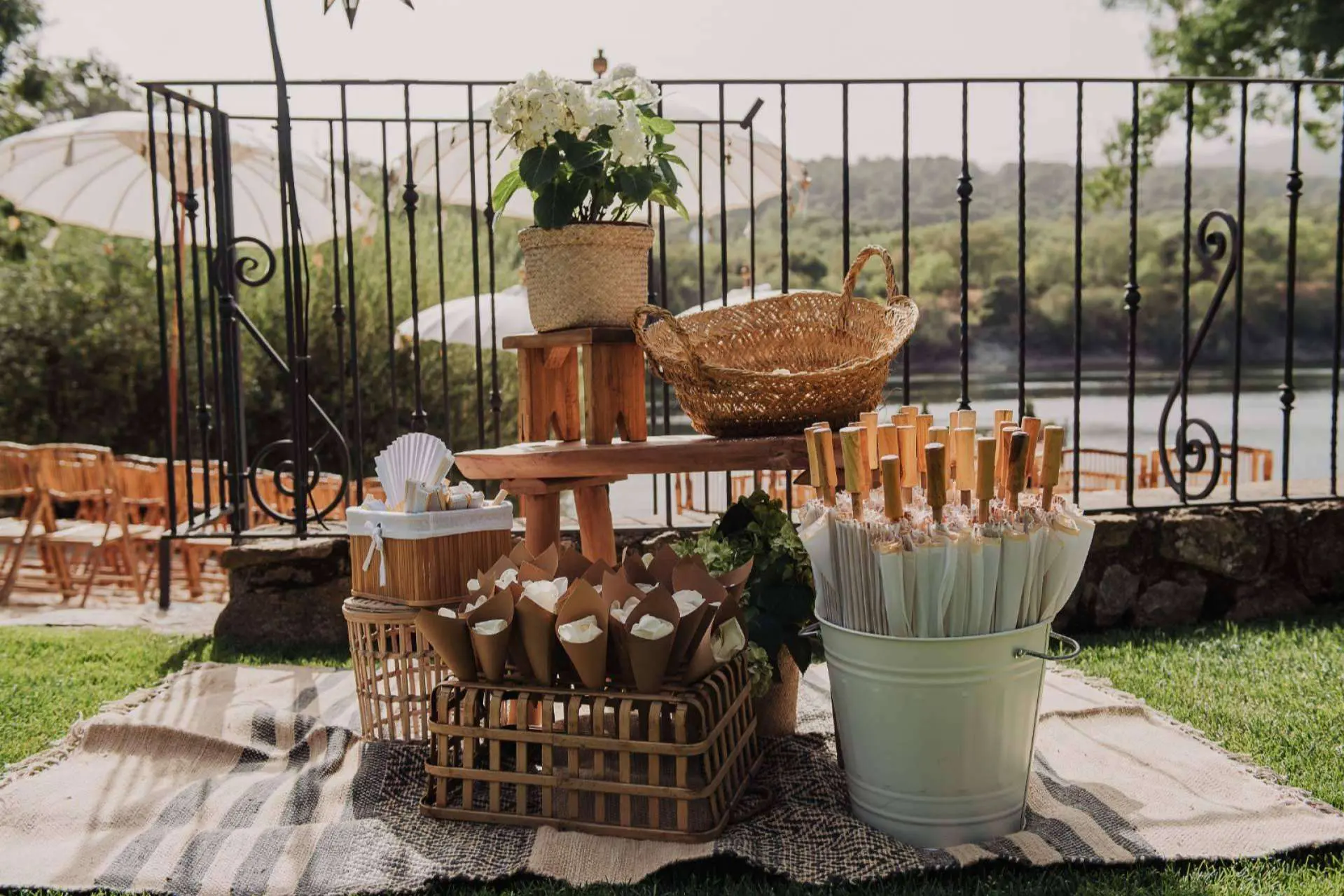 La instalación de distintos tipos de puestos en espacios exteriores o interiores es otro elemento que ha cobrado importancia en la planificación de la decoración de una boda. Por ejemplo, para las ceremonias civiles resulta buena idea un puesto de pétalos. Si la boda es en verano, colocar un puesto de paipáis y sombreros puede ser una forma genial de que los invitados no pasen calor.