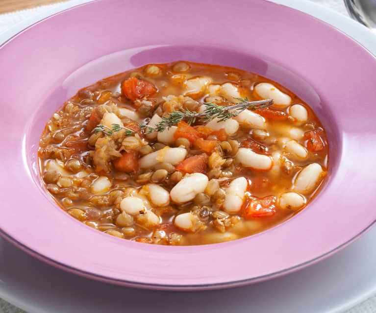 Para unas seis personas necesitas 200 gramos de alubias blancas, una cebolla, un puerro, un diente de ajo, un apio, una zanahoria, un nabo, un trozo de repollo, unos 125 ml de vino blanco y 15 ml de tomate concentrado.