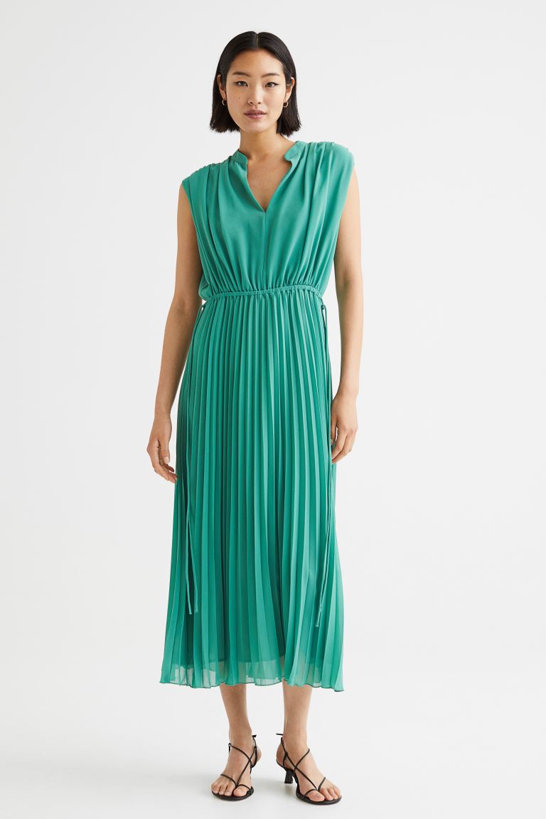 Aquí tienes un diseño que va perfecto para Nochevieja y también para acudir a cualquier evento importante. Un vestido midi plisado, confeccionado con gasa vaporosa.