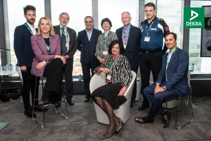 El evento presentación de DEKRA tuvo un formato de mesa redonda con participantes de primer nivel con Mª José Aparicio de la DGT, José Manuel Prieto del Ministerio de Industria, Comercio y Turismo, Guillermo Magaz de AECA-ITV, Gerardo del Rey de la Policía Municipal de Madrid y Maite Pérez del Área Metropolitana de Barcelona.