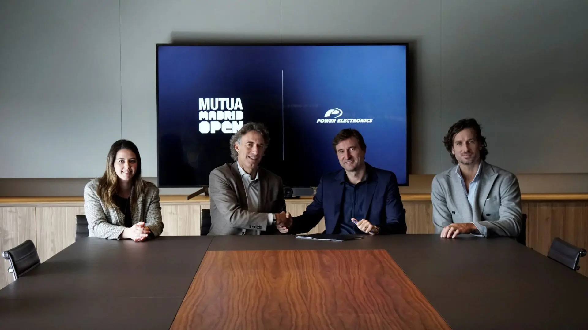 La firma del acuerdo ha tenido lugar hoy en Valencia, en las instalaciones de la multinacional, donde David Salvo, CEO de Power Electronics, ha recibido a Gerard Tsobanian, CEO y presidente del Mutua Madrid Open y al director del torneo, Feliciano López.
