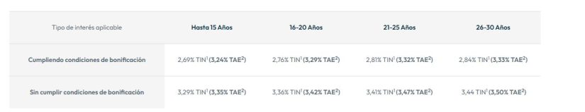 Sin cumplir condiciones de bonificación, el tipo de interés se sitúa a partir del 3,29% TIN (3,35% TAE)