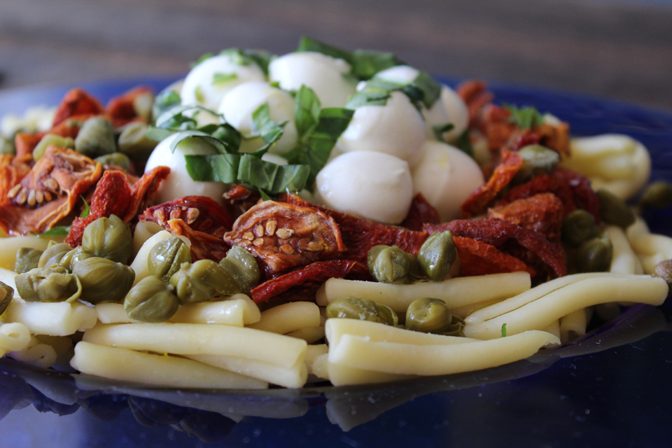 Esta es una versión un poco diferente de la anterior, y da muy buenos resultados si usamos pasta penne. También necesitamos la salsa peso, sal, pimienta, aceite de oliva virgen extra y tomates secos.