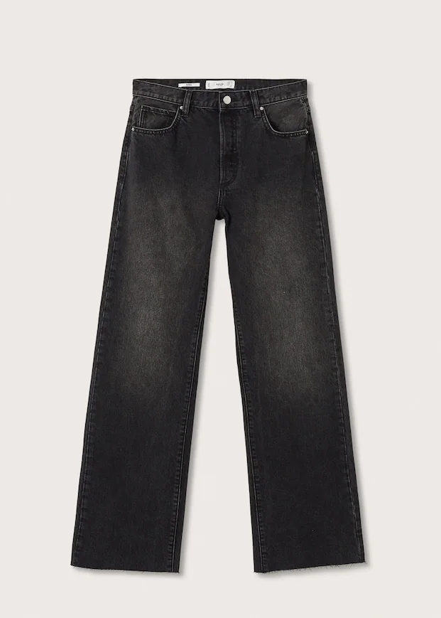 Los vaqueros de pierna recta y ancha están de moda y ahora puedes conseguirlos en Mango a muy poco precio. Son de color negro desgastado, en 100% algodón, confortables, favorecedores y resistentes. El diseño es largo, con tiro alto, y corte widleg. Lleva trabillas para cinturón, cierre de botones y cinco bolsillos. Los bajos están deshilachados para un toque más casual. Es una prenda que forma parte de la colección Committed, que utiliza modos de producción sostenibles. Puedes llevártelos a un precio de 6,99 €.