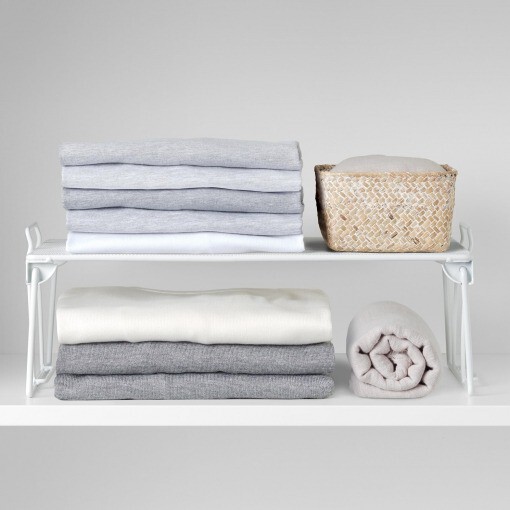 Este estante apilable es una de las soluciones de almacenaje más prácticas de Carrefour, porque gracias a él multiplicas el espacio que tienes disponible dentro de los armarios e incluso en la encimera de la cocina.