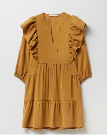 Cerrando nuestro particular recopilatorio con las mejores ofertas en vestidos elegantes pero sin pasarse para que aciertes en todo tipo de situaciones, te mostramos este modelo de volantes que no puede faltar en tu fondo de armario.