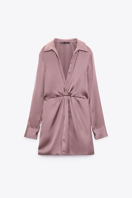 Este bonito vestido resulta perfecto para ocasiones especiales en cualquier época del año. Es corto, con un elegante estilo camisero, con cuello de solapa y un escote cruzado en forma de pico muy favorecedor. La manga es larga, acabada en puño y tiene detalles de frunces en la cintura. Cierra en un lateral con una cremallera que queda oculta en la costura, y hay dos colores a elegir: azul y rosa palo. Tiene un bonito acabado satinado que lo convierte en un vestido muy especial. Tiene un 40% de descuento y puedes conseguirlo a 17,97€.