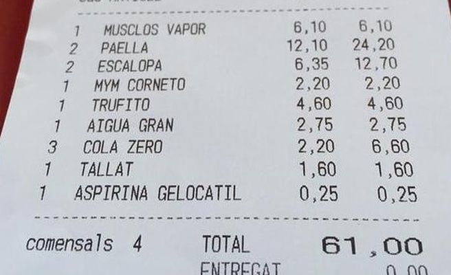 No, esto no es ninguna broma, realmente existen bares en los que la aspirina cuesta dinero. El caso es que no es esto lo más grave, no, sino que un bar o restaurante no tiene permiso para vender medicamentos, es decir, que se está cometiendo un delito. Un detalle es que un camarero tenga una aspirina y te la ofrezca y otra que te la incluya en la cuenta.