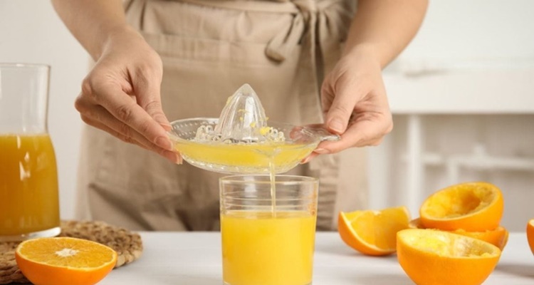 No se necesita horno y la preparación no nos va a llevar más de 7 minutos aunque luego tendrá que reposar en la nevera. Para empezar con el proceso de este postre tenemos que exprimir las naranjas hasta obtener un litro de zumo. Aproximadamente necesitaremos unas 10 naranjas. Puedes utilizar zumo de naranja envasado (mejor que sea de buena calidad), pero el mejor aconsejo es que exprimimos nosotros las naranjas porque el sabor es más rico (y saludable).