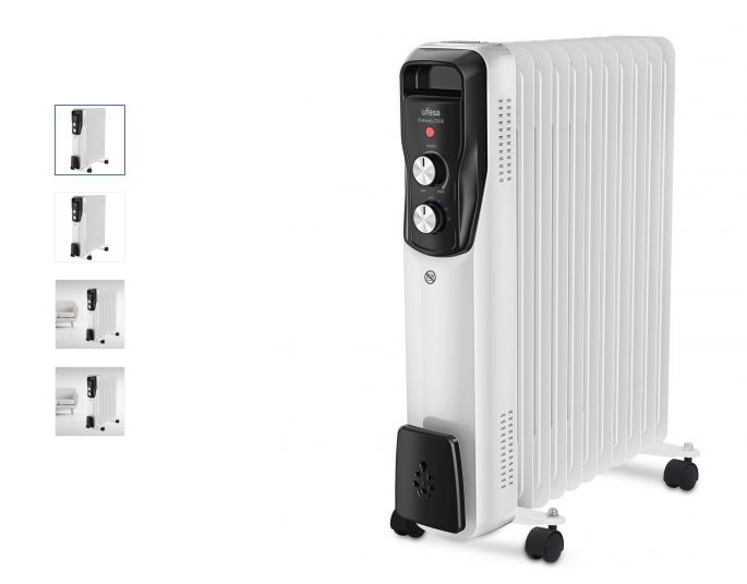Terminamos con algo obligado para el frío que ya llegó: un radiador en este caso. Es un modelo de aceite de Ufesa que rebaja Carrefour de 104 a 83,92 euros, otro chollo. Doble ahorro, porque con este calefactor con ruedas podrás calentar cualquier parte de la casa donde estés o vayas a estar ya sí ahorrar en calefacción, ahora que está el gas y la luz por las nubes. Otro aparato para el hogar más útil y necesario que nunca.