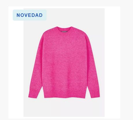 Si buscas un jersey básico pero que sea elegante a la vez, estamos convencidos de que este que ves en la imagen es una muy buena opción. Destaca, además de por su bonito color rosa, por tener el cuello redondo. Pero también por ser muy económico. Su precio es de tan solo 14 euros.