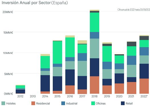 De todas formas, en lo que va de año las inversiones inmobiliarias han superado los 14.000 millones de euros, récord absoluto desde hace 15 años, en 2007 y justo antes del estallido de la burbuja inmobiliaria.