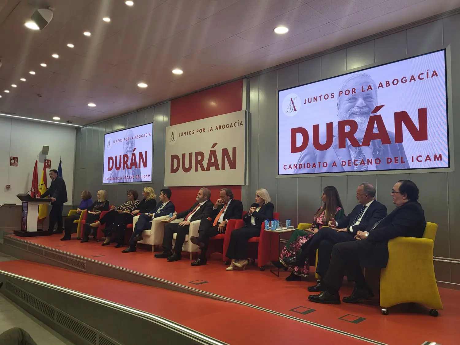 Durán, quien está al frente de la plataforma «Juntos por la Abogacía», ha presentado su candidatura este martes en el salón de actos de la Fundación Once, frente a decenas de abogados de Madrid ante quienes ha compartido sus propuestas programáticas para lograr el control del ICAM.