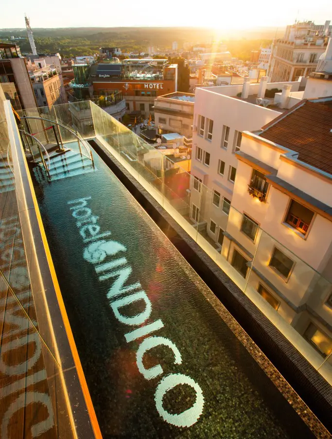 El Hotel Índigo abrió sus puertas en 2014 bajo la gestión de la compañía británica IHG. Entre sus 11 plantas el inmueble alberga uno de los restaurantes más conocidos del circuito gastronómico de la capital, El Gato Canalla, y una terraza única. Además, el edificio cuenta con una piscina en la propia azotea y bar exclusivo.
