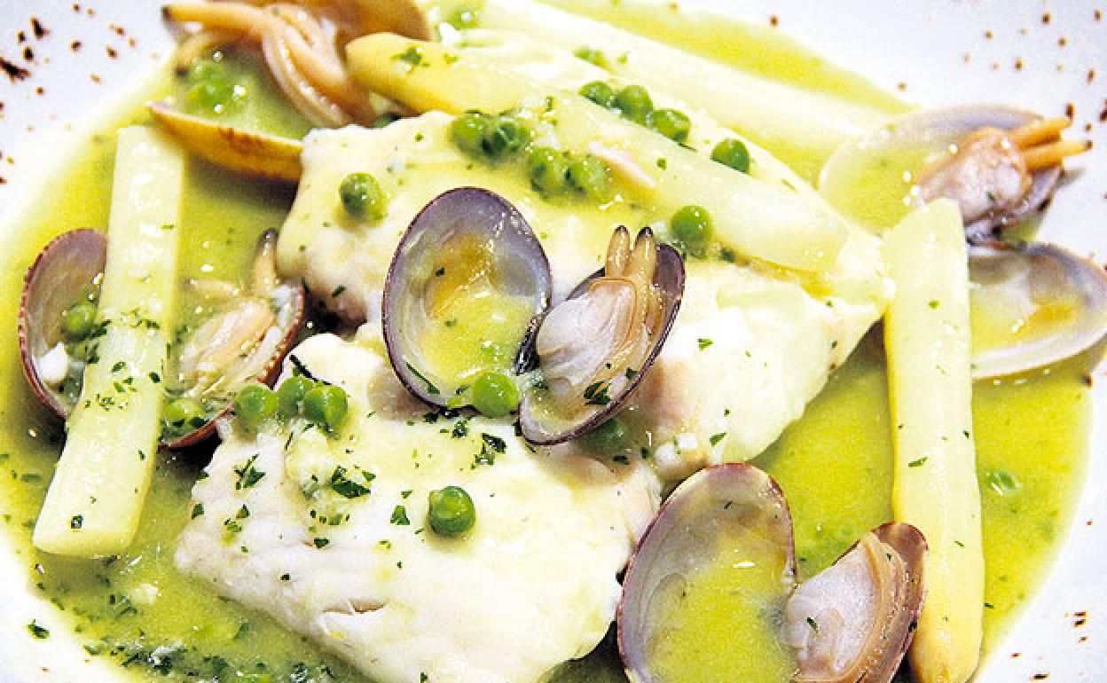 Ya estamos en los últimos pasos de la merluza con más sabor que puedes cocinar. Es el momento clave de que cueza la merluza y lo haga más rápido. Tapamos la cazuela y lo dejamos cocer a fuego medio durante cinco minutos o, si echas las almejas, hasta que se hayan abierto. Escurres los espárragos (si también optas por ellos) y los cortas en tres trozos, decorando antes de servir. Una receta deliciosa, sencilla y ideal para lucirte con los invitados en fiestas y ocasiones especiales.