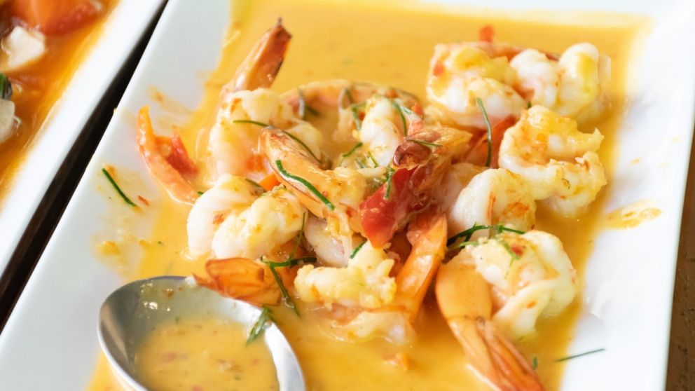 Ya queda poco para terminar la receta navideña de pescado y marisco para asombrar a los comensales. Queda incorporar de nuevo el pescado y los langostinos junto con la salsa de cava. Bates la yema con la nata, manualmente, y lo agregas también.
