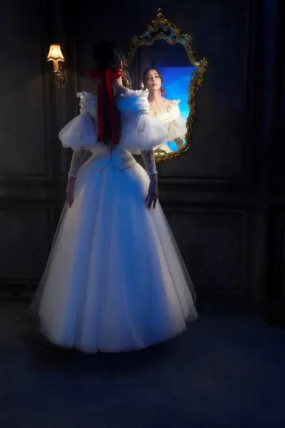 El quinto conjunto de imágenes en movimiento y fotografía fija para «Temptation Apple» ha sido publicado hoy con Vogue Hong Kong. En estas imágenes, Tia aparece con su corsé de Prakakaas y su falda Poem, mirando con curiosidad el espejo mágico.