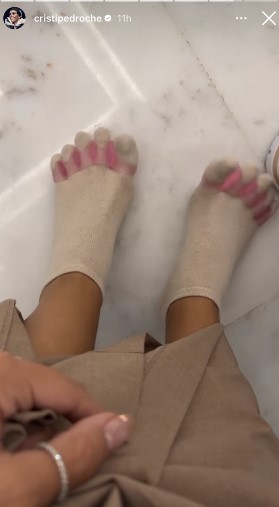 Se trata de unas siliconas que se colocan entre los dedos para separarlos. Son de silicona blandita para que no molesten, y lo que busca es recuperar la separación natural de los dedos de los pies que suelen estar comprimidos por el uso de zapatos inadecuados, sobre todo los zapatos de tacón que Cristina Pedroche, obviamente, se pone mucho en los programas de televisión o galas a las que asiste.