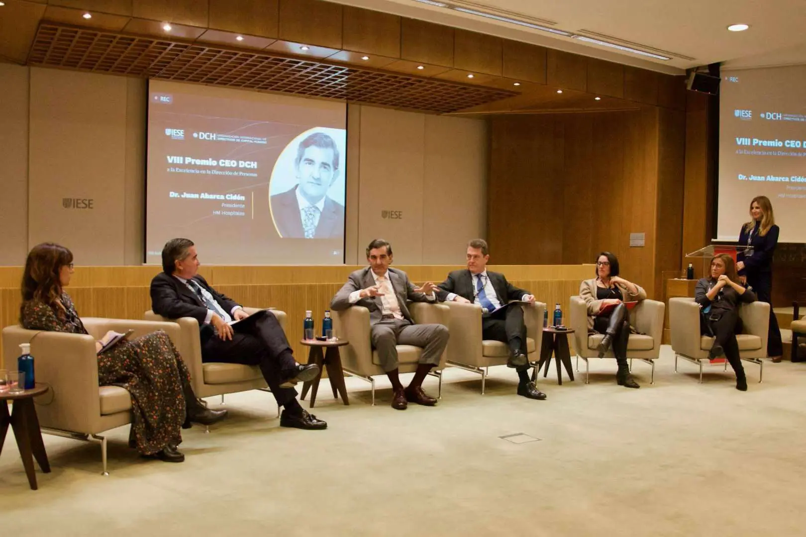 Coincidiendo con este evento, tuvo lugar la ceremonia de entrega del Premio CEO DCH a la Excelencia en la Dirección de Personas. Un reconocimiento otorgado por DCH y cuya elección se realiza por votación de los miembros de DCH a la terna de candidatos, CEO y presidentes propuestos por la Junta Directiva de DCH y los cuatro principales medios de comunicación especializados en Recursos Humanos. Este premio, que reconoce la labor en el ámbito de dirección de personas de un CEO y consejero delegado, ha recaído en esta VIII edición en el Dr. Juan Abarca Cidón, presidente de HM Hospitales. El premiado fue entrevistado por los principales medios de comunicación especializados en Recursos Humanos representados por: Eva Galli de Equipos y Talento, Francisco García Cabello de Foro Recursos Humanos, Mercedes de la Rosa de Capital Humano y Maite Saenz de Observatorio de Recursos Humanos.