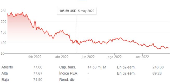 Las acciones de la compañía han pasado de costar más de 250 dólares a poco más de 70. Un golpe para los accionistas que esperan que 2023 sea un mejor año para la empresa. Es cierto que de momento mantienen proyecciones positivas en cuanto a nuevos subscriptores, pero eso no quiere decir que no deban mantenerse en guardia.