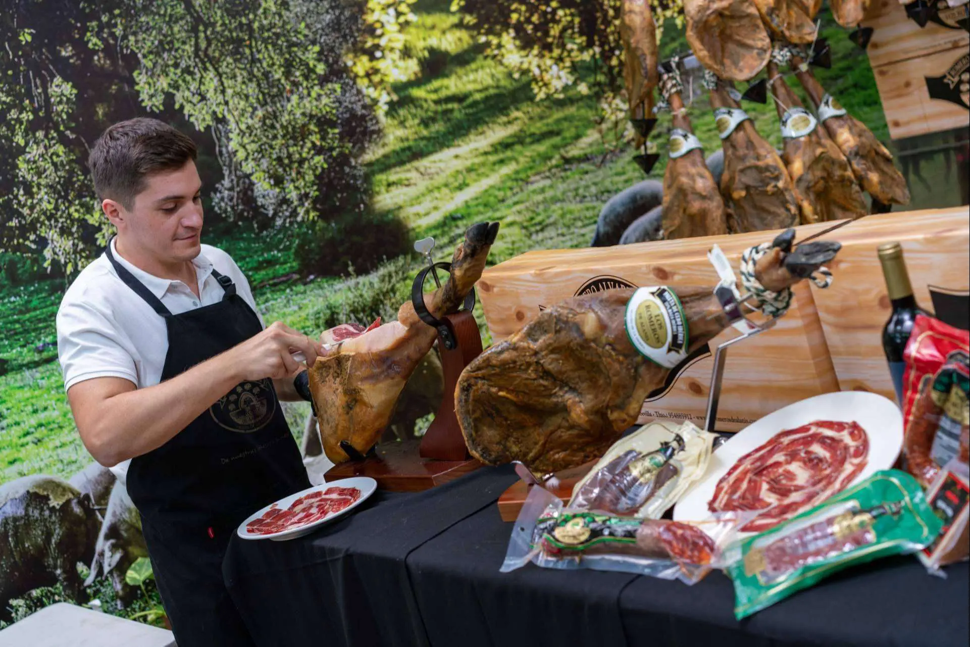 A su vez, los lotes navideños contienen caña de bellota, lomito ibérico de bellota y morcón ibérico de bellota, así como salchichón cular, jamón curado superior y jamón de bellota, entre muchos otros productos típicos.