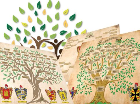 Los árboles familiares genealógicos son una forma de representar gráficamente los antepasados y descendientes de un individuo, de manera organizada y sistemática. Para realizar sus árboles familiares, Tienda Heráldica puede realizar una exhaustiva investigación de la genealogía de quien lo solicite mediante sus bases de datos y solicitudes a diversos registros. Los mismos pueden solicitarse impresos en láminas o lienzos, según la preferencia del cliente.