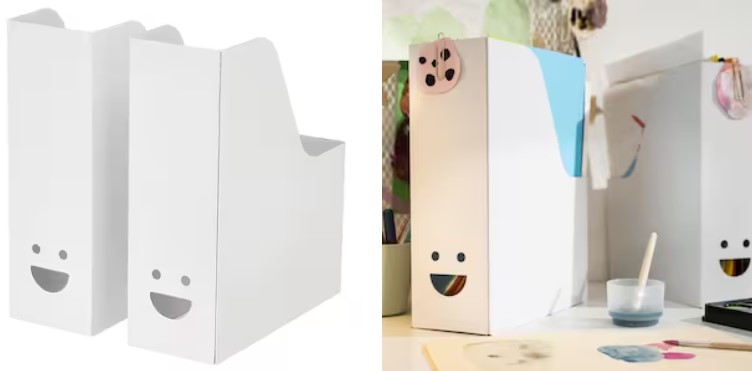 En este archivador podrás guardar desde periódicos y facturas hasta los primeros dibujos de tus hijos. Además, si quieres reorganizar la estantería, no te costará nada moverlo de sitio. Se llama Tjabba y es perfecto para guardar desde revistas y facturas hasta los primeros dibujos de tu hijo. Fácil de montar y de plegar cuando no lo necesites y prefieras ahorrar espacio. Las dos unidades cuestan en Ikea 0,50 euros.