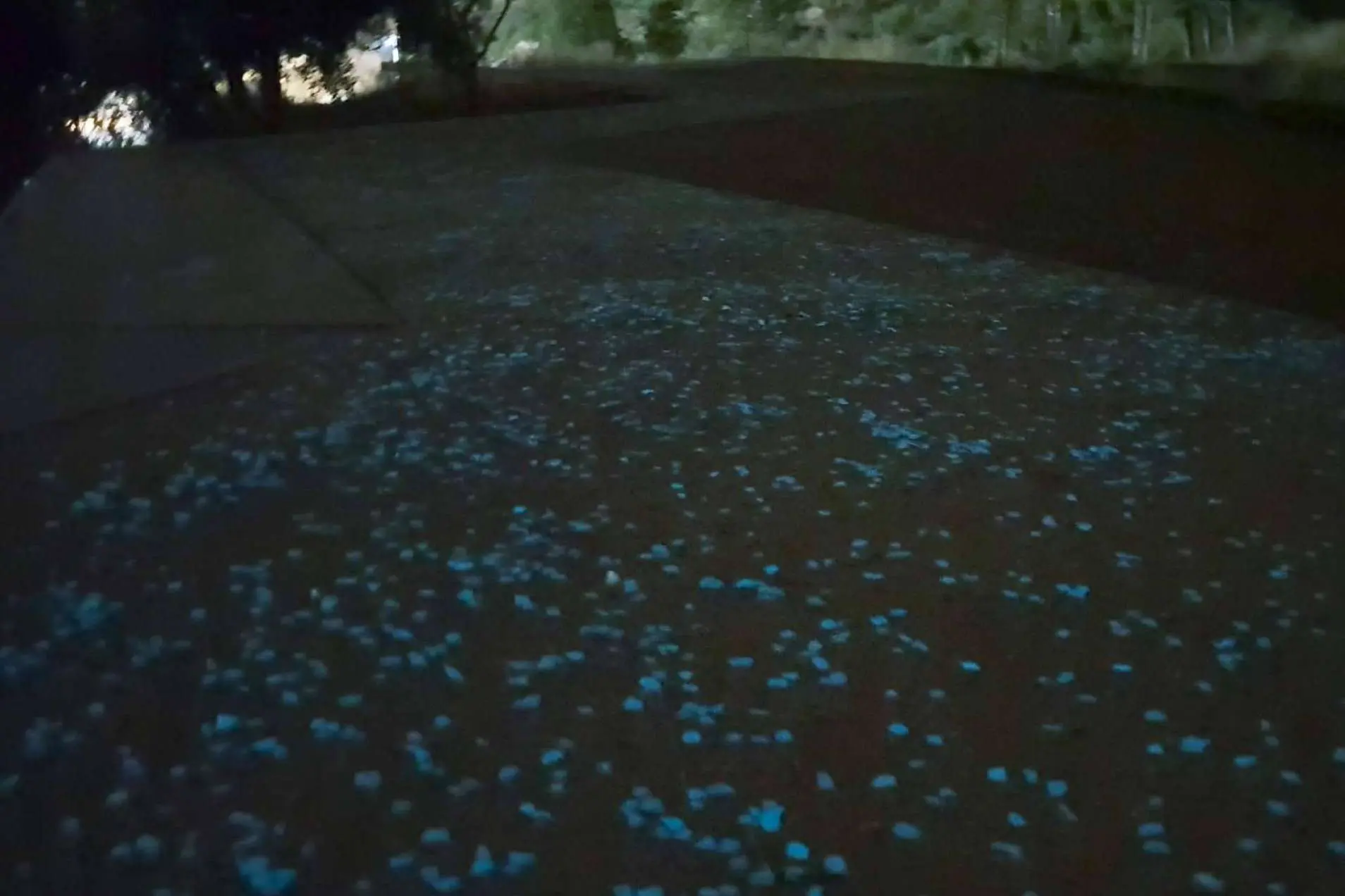 Advierten que, para obtener el máximo de luminiscencia, no debe incidir sobre ellas ninguna fuente de luz. En la oscuridad, se pueden apreciar las distintas formas que diseñadas gracias a este material. Además de adornar, los diseños pueden también ser concebidos para señalar caminos en zonas pobremente iluminadas. Solo hay que aplicar al árido fotoluminiscente sobre la superficie que se va a intervenir.