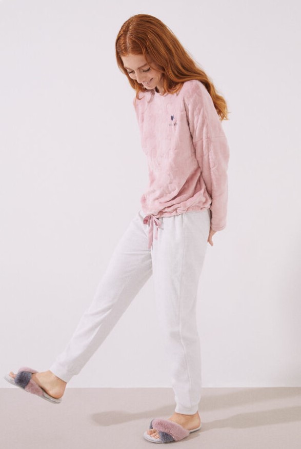 Por último te mostramos este es otro pijama de dos piezas de Women’Secret en tejido polar rosa y gris con estampado de logo Neighbor Blonde. La camiseta es estampada con bordado y trabilla en bajo. El pantalón es pitillo con puños y cintura elásticos para un mejor ajuste. Súper suave y perfecto para cuando llega el frío. No necesitarás encender el calentador al máximo. Úsalo y entra en el chat con amigos más famoso de Internet. Tiene un descuento del 30% por lo que solo cuesta 27,99 euros.