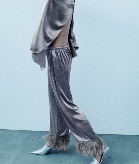 Este es uno de los pantalones de Zara que más nos ha gustado de todos los que hemos tenido la oportunidad de ver. Y todo porque tienen un diseño que es muy original. ¿Te has fijado en las plumas que tiene adheridas en los bajos? Si te decides a comprarlos tan solo vas a tener que pagar por él 69’95 euros.