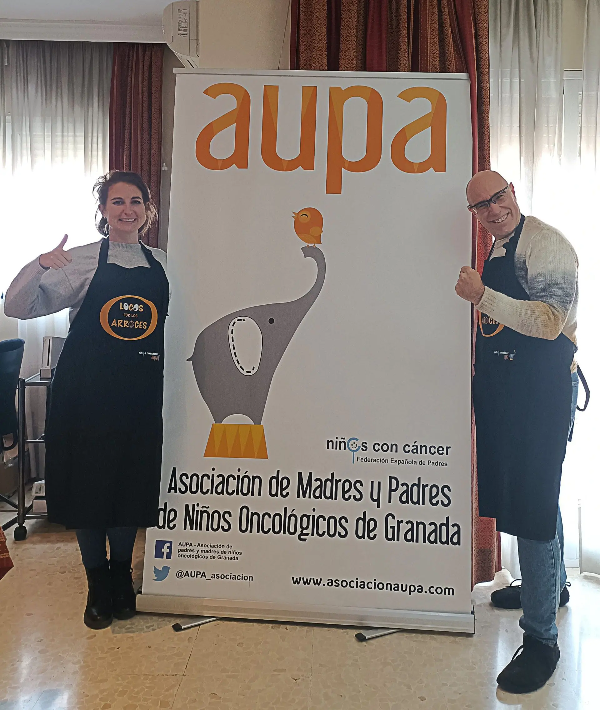 El grupo de Facebook LOCOS POR LOS ARROCES en colaboración con la ASOCIACIÓN AUPA DE NIÑOS CON CÁNCER han presentado hoy el delantal oficial del grupo en la delegación de la asociación en Granada, la compra de este delantal solidario incorpora el donativo de 1€ por delantal, el donativo contribuirá a la consecución de los fines de la propia asociación, como mejorar el día a día tanto de los niños oncológicos como de sus familiares, aumentar las ayudas a las familias para largas hospitalizaciones, e incluso para ampliar la colaboración económica que proporciona la Asociación AUPA al proyecto Genyo de investigación oncológica a nivel genómico.