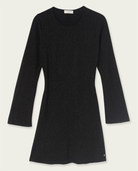 En segundo lugar, si eres una amante de los vestidos cortos, te mostramos un diseño de la marca Brownie que no querrás dejar escapar. Se trata de un vestido en color negro con una preciosa apertura en la espalda. Además, destaca por el uso del hilo metalizado.