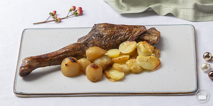 De nuevo, la guarnición es la misma que en los platos anteriores, es decir, cebollitas confitadas y patatas panaderas cortadas y preparadas de una forma similar. En este caso, la ración es para 2 personas y tiene un precio de unos 20 euros. Para prepararlo, tendrás que hornear a 200 grados durante 25 minutos para que quede dorado y perfecto.