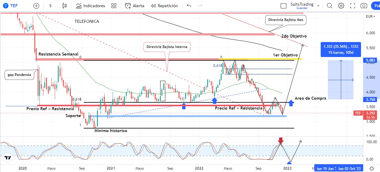 De lograr respetar dicho soporte y generar un movimiento alcista que vulnere la resistencia macro establecida por el impacto bajista con la llegada de la pandemia sobre los 3,7 euros, de seguro las acciones de Telefónica buscarán una revalorización por encima de los 5 euros, lo que representa más de un 37% de potencial beneficio estimado al largo plazo.