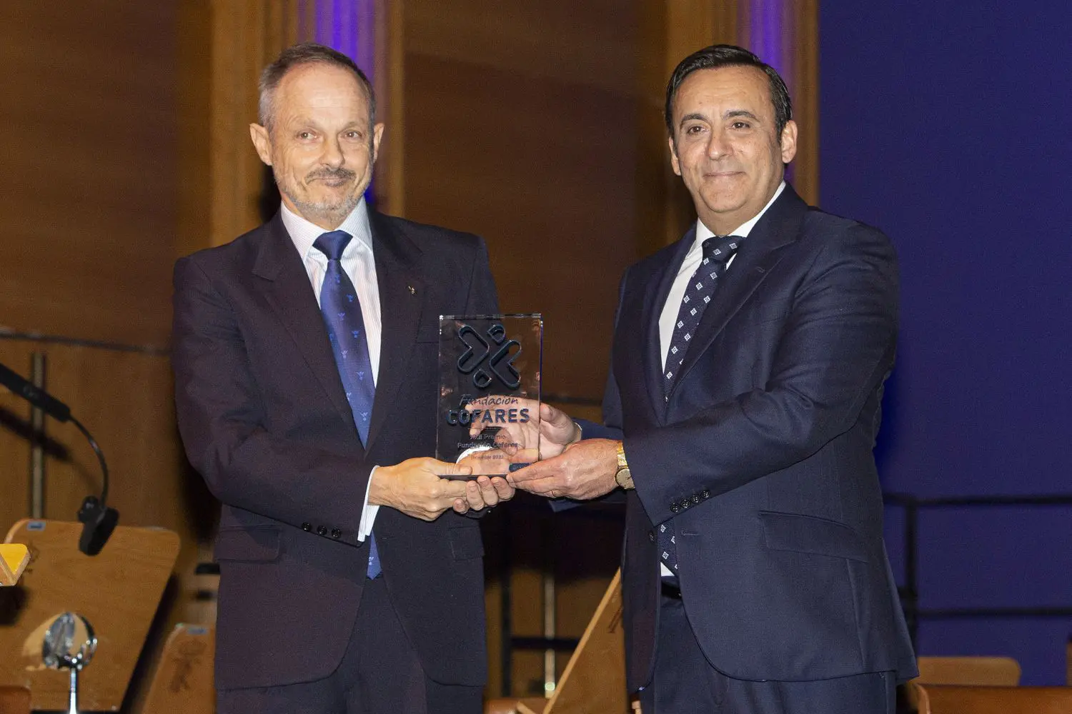 Eduardo Pastor, presidente de Cofares y de su Fundación, ha sido el encargado de hacer entrega del premio a Mariano Ugarte, presidente de la Asociación Pablo Ugarte, por su importante labor centrada en promover la investigación para luchar contra el cáncer infantil. De hecho, se trata de la asociación privada que más dinero aporta a la investigación en oncología pediátrica en España, con la donación de más de 58.000 euros mensuales a 28 equipos de investigación de hospitales de diferentes puntos de España.