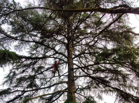 Otro de los trabajos de la empresa consiste en cortar las ramas de la parte inferior del árbol con el objetivo de hacer espacio en esta zona. Así, consiguen una copa más elevada. Por otro lado, también realizan la reducción de la copa en árboles que rebasan el espacio asignado, con el fin de reducir su altura.