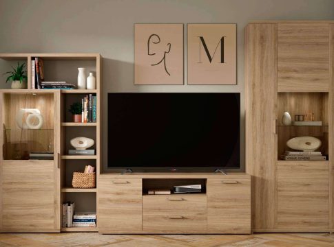 Hay quienes buscan un mueble de salón para almacenar objetos, es decir, un modelo que destaque por su gran funcionalidad. Para ellos, el modelo Vinicius, de 234 cm y por un precio de 199 € (sin descuento asciende a 286 €), es perfecto. Este modelo combina el diseño minimalista con la calidez del color sonoma y del blanco, que siempre es una buena elección. Sus estructuras alternas permiten incorporar diferentes elementos, en caso de que se quiera colocar mucha decoración, o dejar con pocos detalles para seguir la misma línea minimalista.