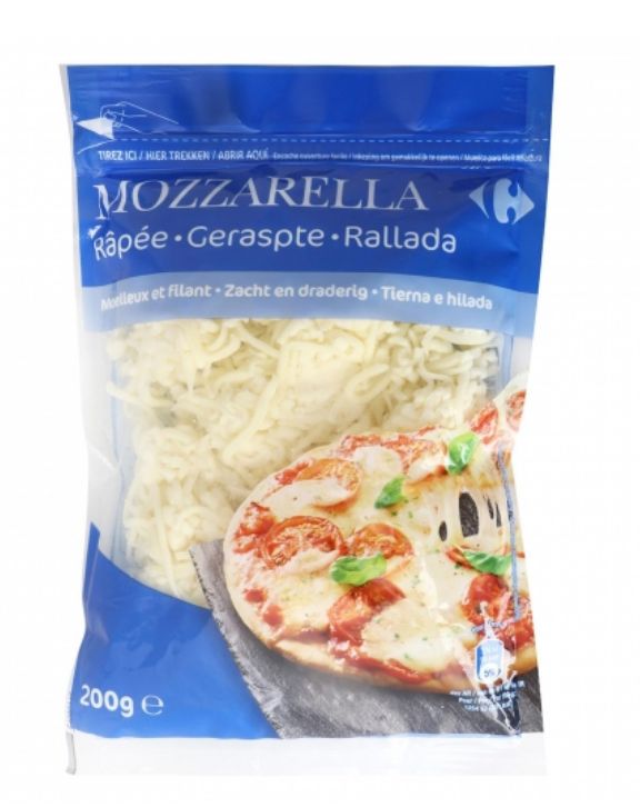 6Queso rallado mozzarella Carrefour sin gluten 200 gramos