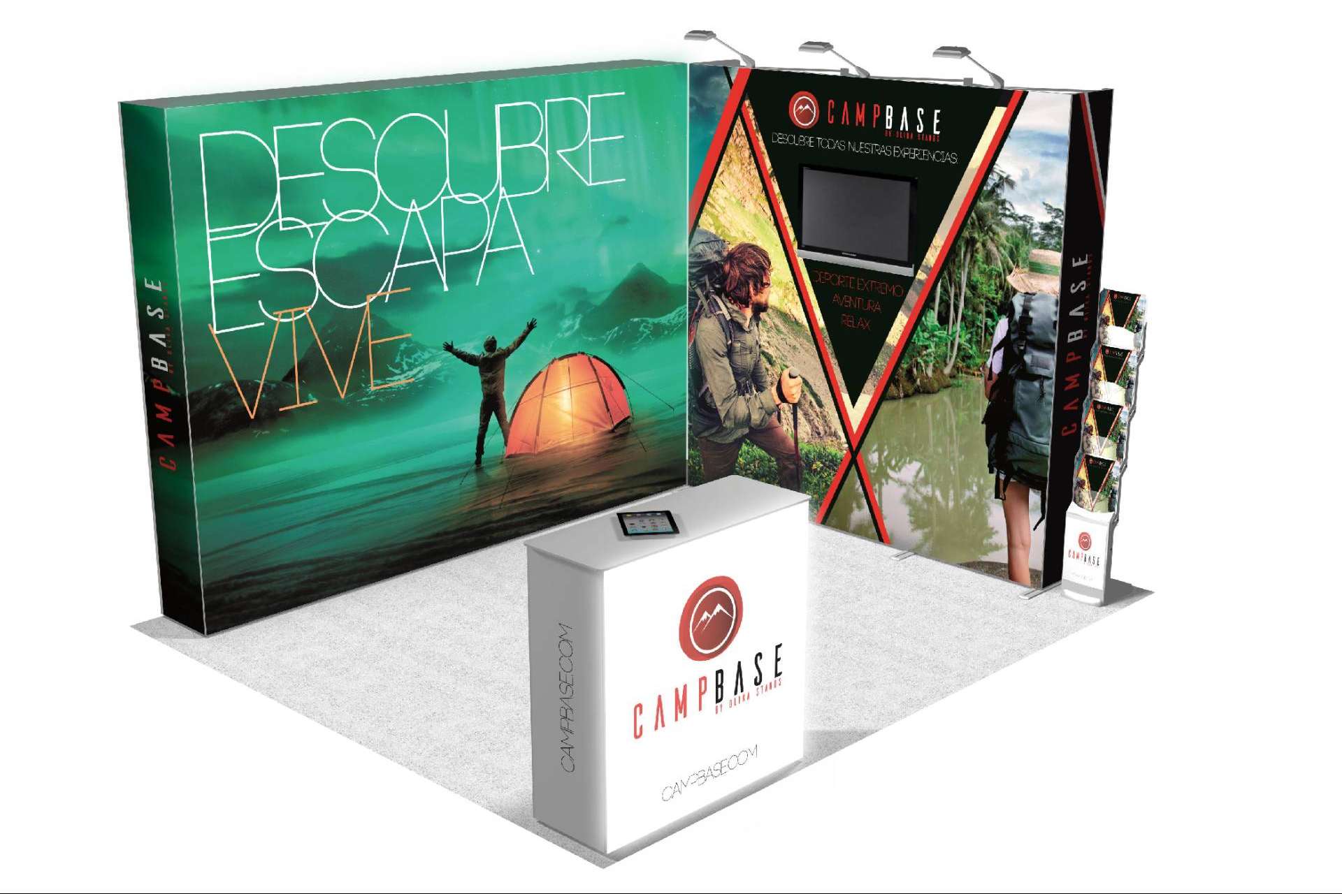 De este modo, el cliente solo debe elegir una de las opciones en función del producto o servicio que desea promocionar, y de los lanzamientos y novedades que quiere comunicar. Para el siguiente congreso solo deberá renovar las gráficas para tener un stand diferente. Y así podrá reutilizarlo en otras oportunidades, adaptándolo al nuevo espacio.
