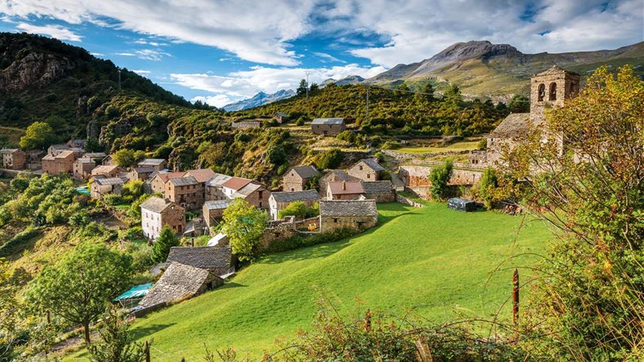 Este pueblo de curioso nombre está considerado como uno de los más privilegiados de la provincia de Huesca, tanto por su buen estado de conservación del patrimonio como por el paisaje que lo rodea.