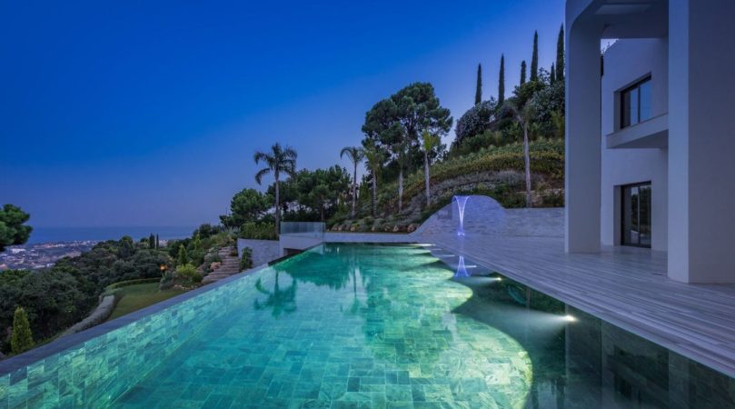 Se trata de un chalet de 3.000 metros cuadrados sobre una parcela de más de 8.000 metros cuadrados ubicado en la urbanización La Zagaleta, en el pueblo de Benahavís, Málaga, por el preci de 29 millones de euros. Una propiedad de estilo modernista, con techo altos y grandes ventanales, además de unos exteriores únicos que incluyen una piscina infinita con vistas al mar Mediterráneo.