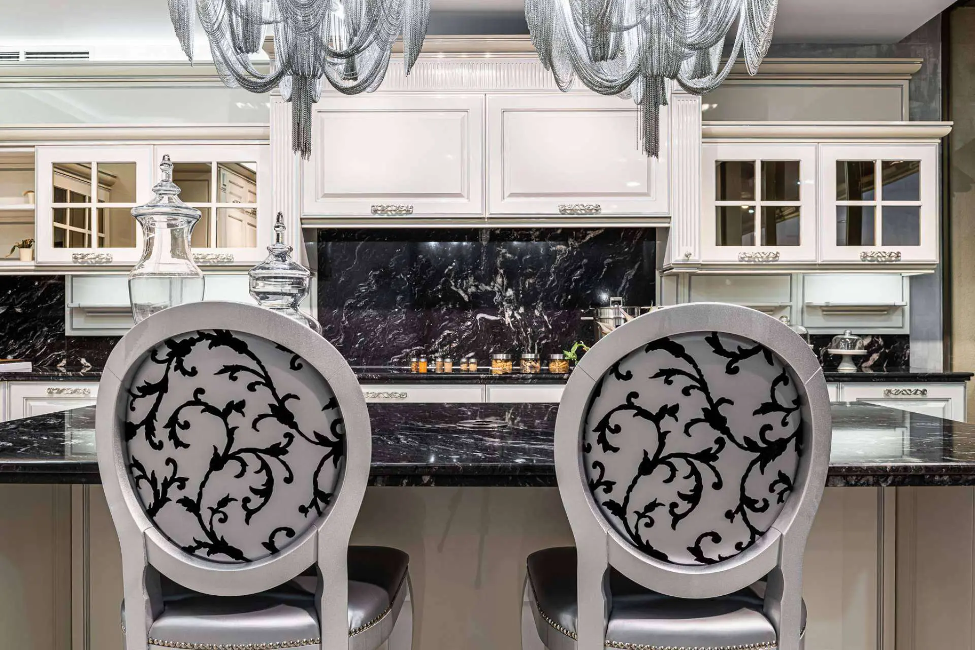 Otros de los diseños son el Memory, de estilo tradicional y moderno a la vez; Villa d’Este, donde predomina la madera, una paleta de colores serenos y naturales y transparencias sugerentes en el cristal decorado con una sola técnica de microfusión; y Dialogo, con sus acabados de roble.