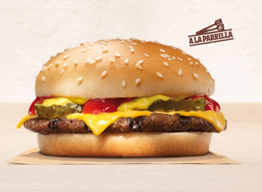 De manera similar ocurre con la cheeseburger, es igual a la anterior, pero con una rodaja de queso. Pocas calorías y grasas, aunque también escaso el tamaño. Es una hamburguesa para los amantes del queso. Está hecha con carne 100% de res a la parrilla queso, pickles, mostaza y salsa de tomate, papa pequeña y bebida. El queso cheddar se derrite por esta hamburguesa que hará las delicias de sus comensales. Un básico que nunca te desilusionará.